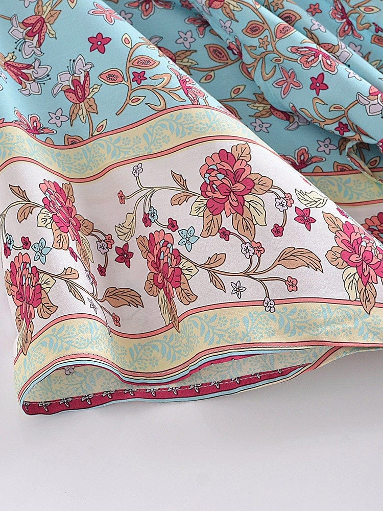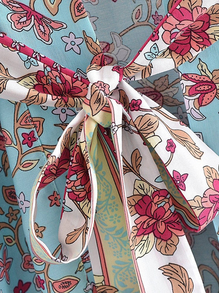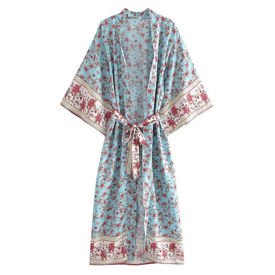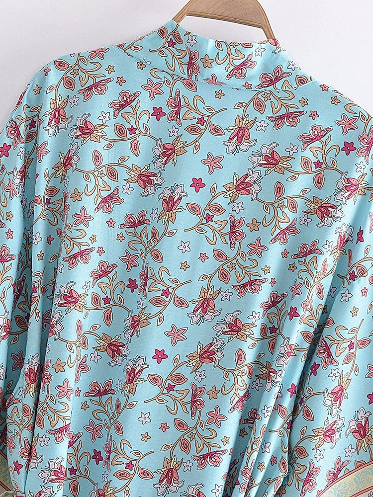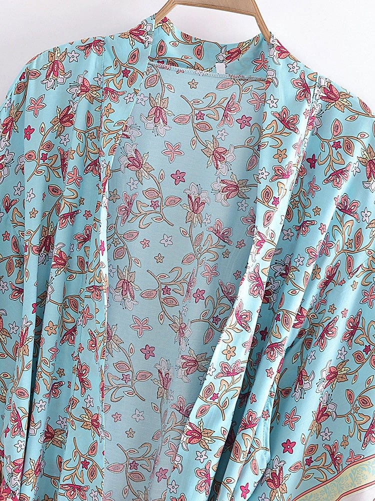 About:?This kimono is pretty in floral and has flare sleeves and dropped shoulders that's excellent for bright spring days.