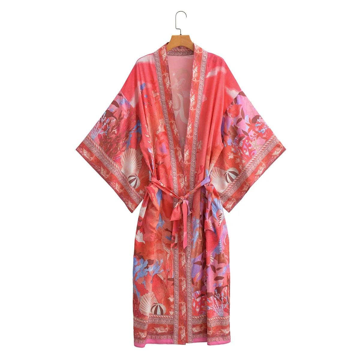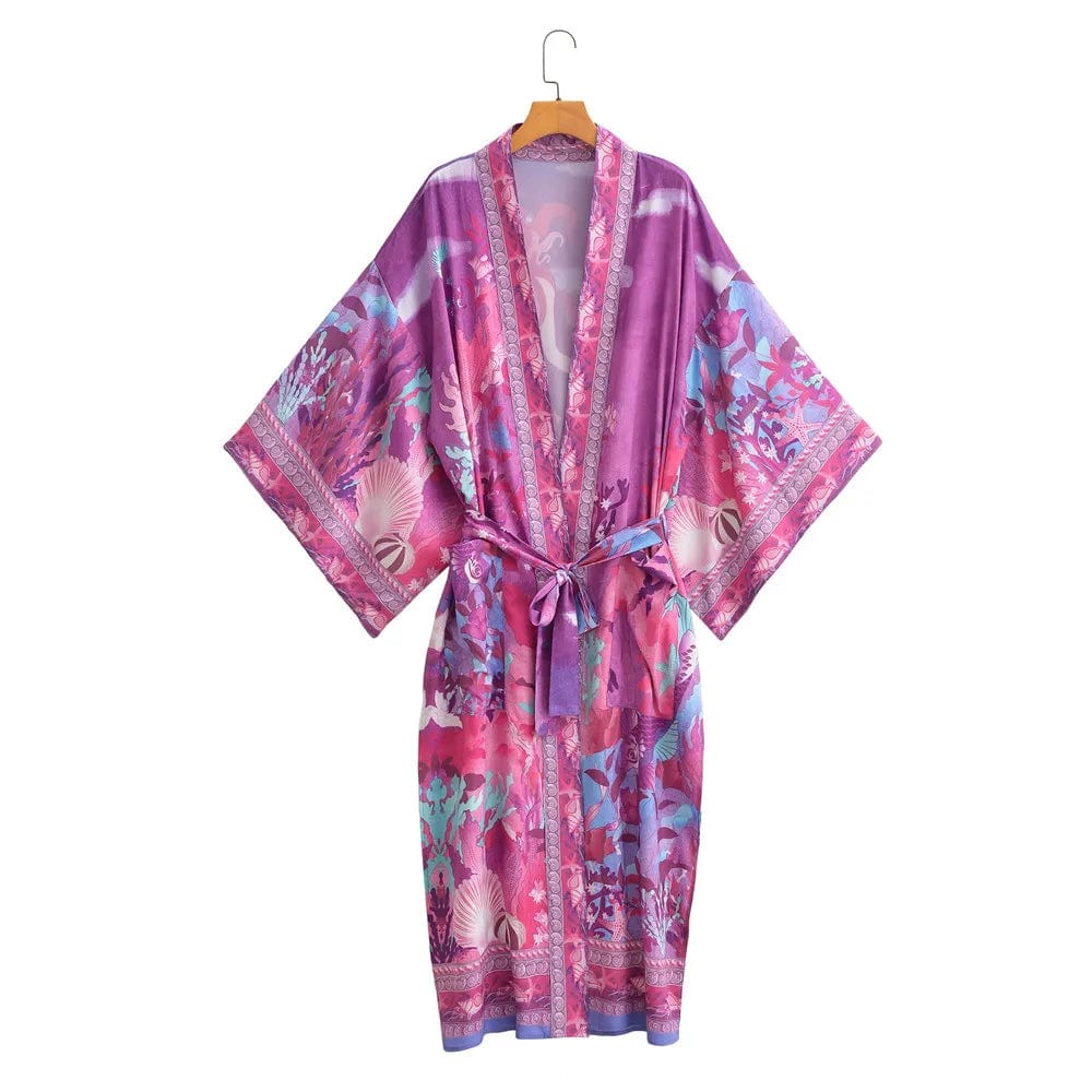 Crafted for comfort and versatility, this kimono invites you to embrace your free-spirited style. Whether layered over swimwear for a beachy vibe or paired with casual attire for everyday wear, it's the perfect statement piece to exude effortless boho chic. Experience the enchantment of the sea with this stunning midi kimono that embodies both relaxation and fashion-forward flair.