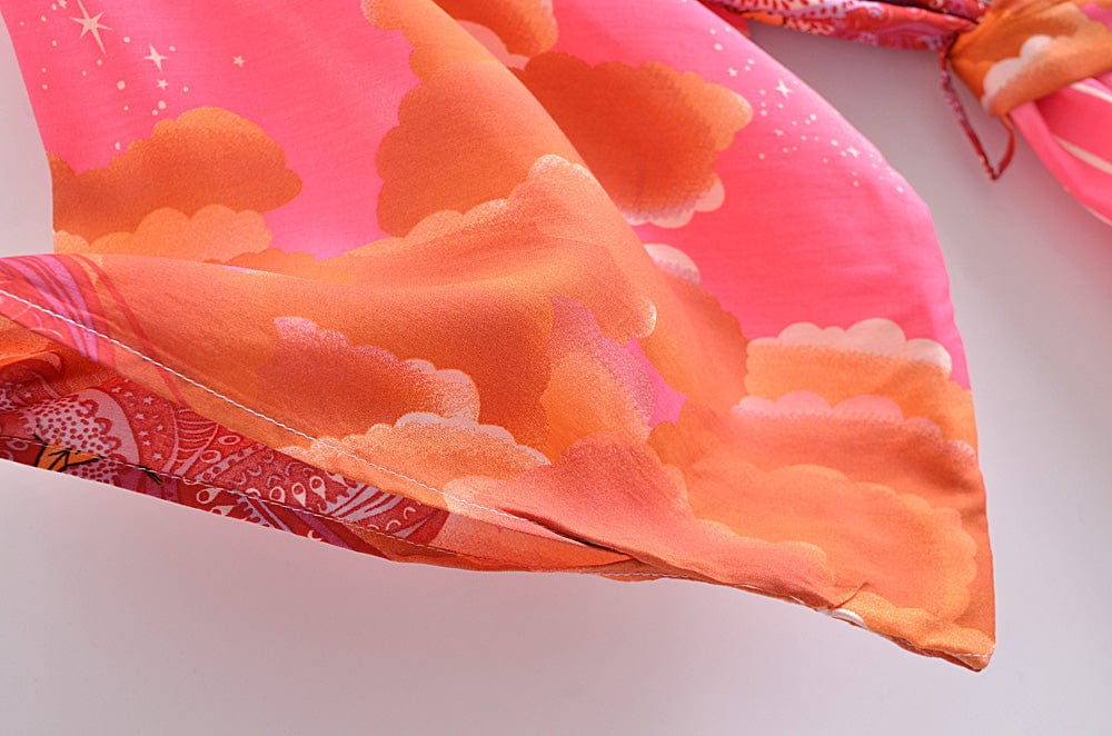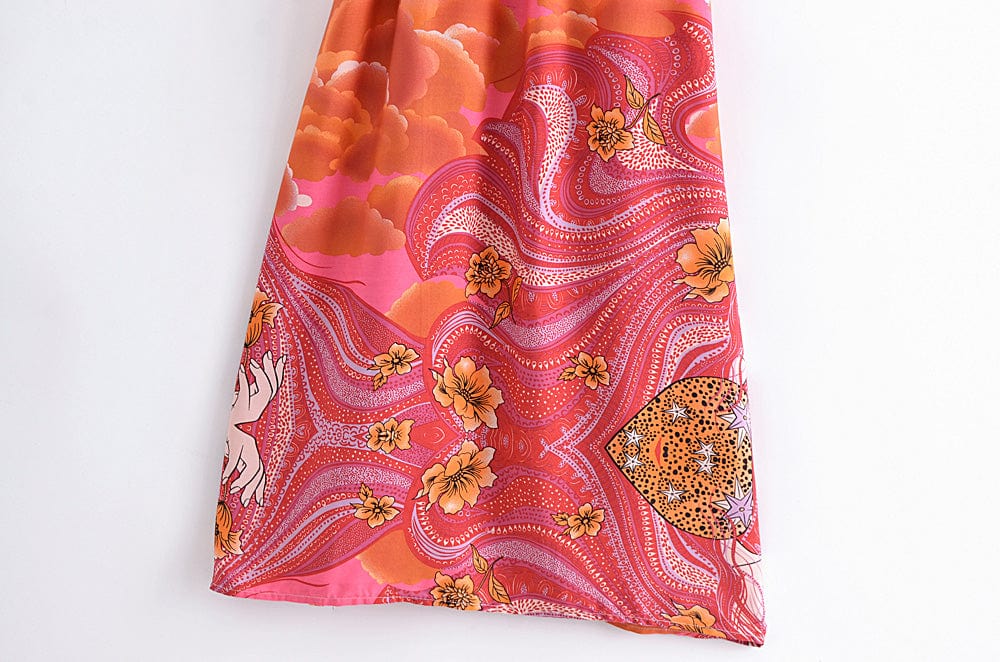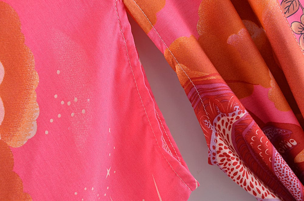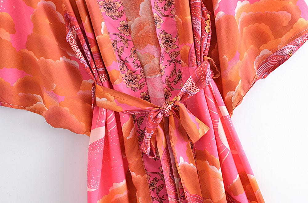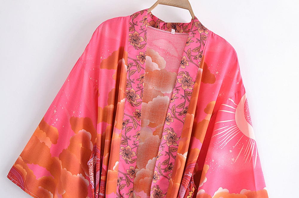 This maxi kimono comes in a soft fabric with a shapeless silhouette and a pink and bold design all-over.