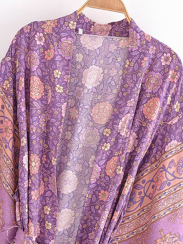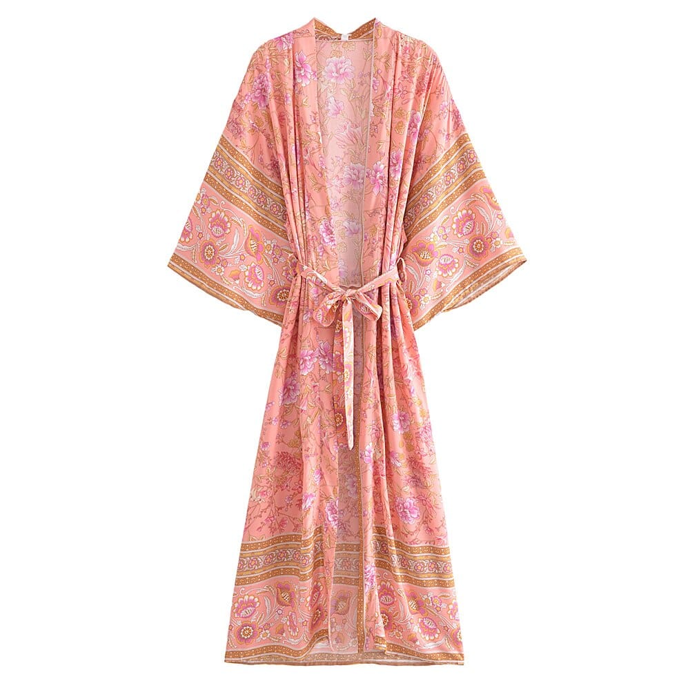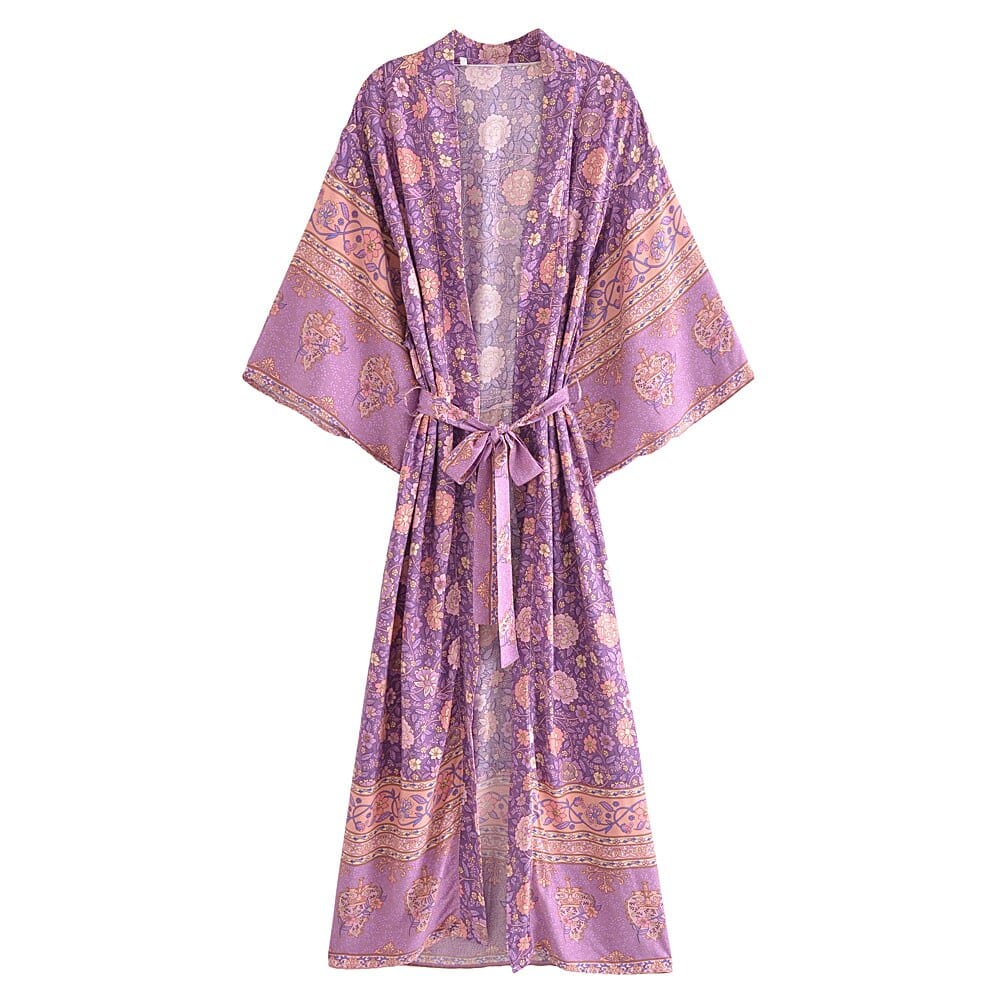 The Selene Boho Kimono is a must-have piece of the bohemian style. This Selene Boho Kimono fits remarkably well in the boho spirit thanks to its exotic look, its vegetal patterns, and its flowing fit.